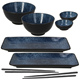 - sushi set, materiál porcelán, elegantní design v černo modré barvě, obsahuje: 2 ks misky na sojovou omáčku 8 cm- objem 70 ml, , 2 ks misky na rýži 13 cm - objem 420 ml, 2 ks obdélnikové talíře 25x12 cm, 2 páry hůlek, vhodné do myčky nádobí, vhodné do mikrovlnné trouby