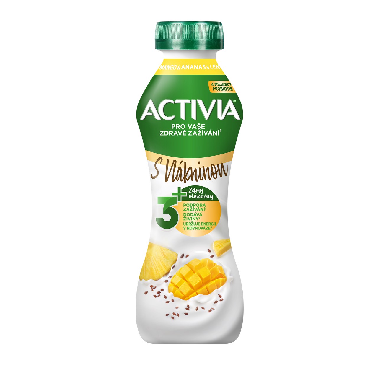 - Activia Ananas-Mango s lněnými semínky - Zakysaný nápoj s bifidokulturou.