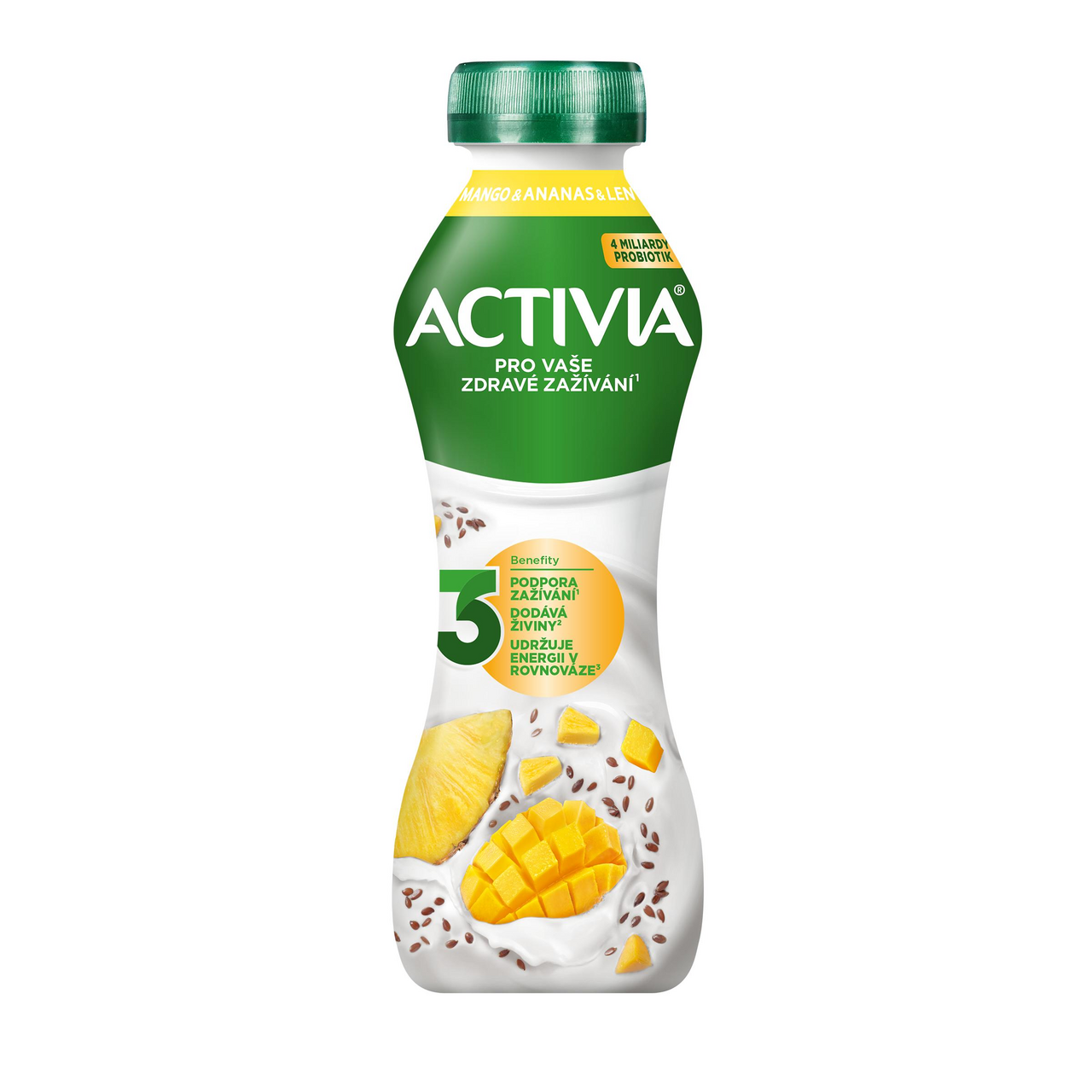 - Activia ananas/mango s lněnými semínky - jogurtový nápoj s bifidokulturou