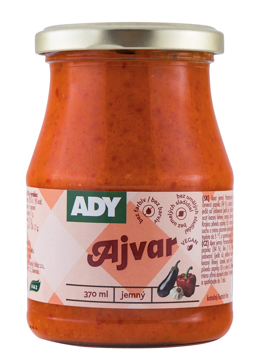 - červená paprika (84%), lilek (7%), slunečnicový olej, cukr, jedlá sůl jodovaná (jedlá sůl, jodičnan draselný), kořeninová paprika, ocet kvasný lihový, česnek, pepř černý