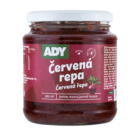 - červená řepa, pitná voda, ocet kvasný lihový, jedlá sůl jodovaná (jedlá sůl, jodičnan draselný), cukr, reglátor kyselosti: kyselina citrónová, koření, sladidlo: sacharin sodný