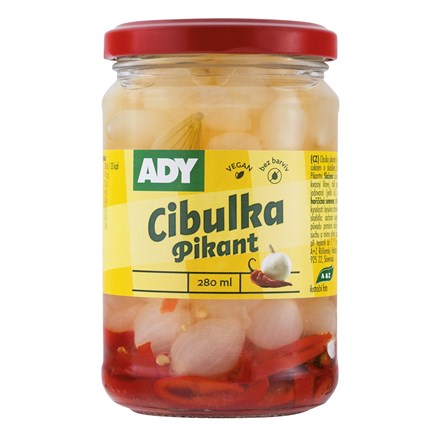 - cibule prelovka (50%), pitná voda, ocet kvasný lihový, chulli paprika krájená (2%), jedlá sůl jodovaná (jedlá sůl, jodičnan draselný), cukr, koření: HOŘČIČNÁ SEMENA, stabilizátor: chlorid vápenatý, regulátor kyselosti: kyselina citrónová, antioxidant: DISIŘIČITAN SODNÝ, sladidlo: sacharin sodný