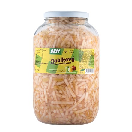 - jablka, pitná voda, cukr, regulátor kyselosti: kyselina citrónová, stabilizátor: chlorid vápenatý, antioxidant: kyselina askorbová, sladidlo: sacharin sodný