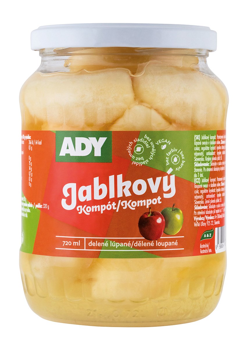 - jablka, pitná voda, cukr, regulátor kyselosti: kyselina citrónová, stabilizátor: chlorid vápenatý, antioxidant: kyselina askorbová