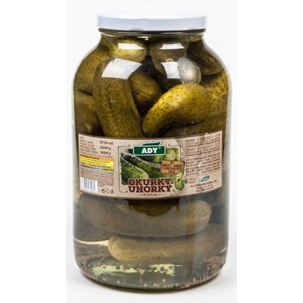 - okurky, pitná voda, ocet kvasný lihový, jedlá sůl jodovaná (jedlá sůl, jodičnan draselný), cukr, stabilizátor: chlorid vápenatý, sladidlo: sacharin sodný