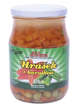 - Karotka, hrášek, pitná voda, sůl jedlá