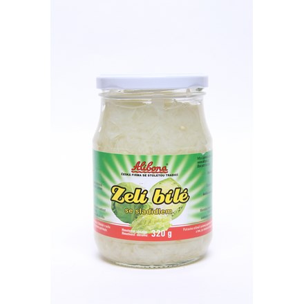 - Zelí bílé (50%), pitná voda, ocet kvasný, sůl, regulátor kyselosti: kyselina citrónová, aroma, hořčičné semínko, antioxidant E223, sladidlo: sacharin