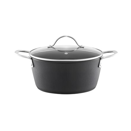 - Hliníkový hrnec Curly spojuje moderní design, odolnost a pohodlí. Kovaný hliník zajišťuje rovnoměrný ohřev a úsporné vaření. Nepřilnavý povlak Qualum Basic usnadňuje přípravu i čištění. Černý drážkovaný vzhled s ocelovými rukojetěmi, vhodný na všechny sporáky i do trouby do 220 °C. Dodáván s poklicí.