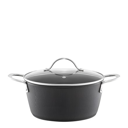 - Hliníkový hrnec Curly spojuje moderní design, odolnost a pohodlí. Kovaný hliník zajišťuje rovnoměrný ohřev a úsporné vaření. Nepřilnavý povlak Qualum Basic usnadňuje přípravu i čištění. Černý drážkovaný vzhled s ocelovými rukojetěmi, vhodný na všechny sporáky i do trouby do 220 °C. Dodáván s poklicí.