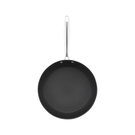 - Pánev z kolekce Curly spojuje eleganci a praktičnost. Je z kovaného hliníku odolného proti deformaci, rovnoměrně se zahřívá a šetří energii. Nepřilnavý povlak Qualum Basic usnadňuje vaření i čištění. Stylový černý design s ocelovou rukojetí, vhodná na všechny sporáky i do trouby do 220 °C.