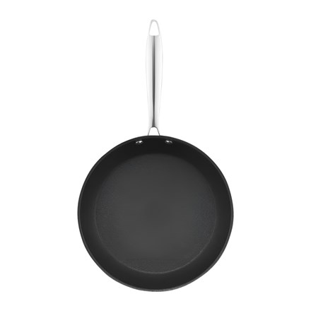 - Pánev z kolekce Curly spojuje eleganci a praktičnost. Je z kovaného hliníku odolného proti deformaci, rovnoměrně se zahřívá a šetří energii. Nepřilnavý povlak Qualum Basic usnadňuje vaření i čištění. Stylový černý design s ocelovou rukojetí, vhodná na všechny sporáky i do trouby do 220 °C.