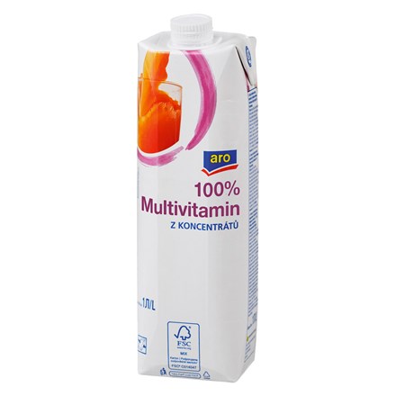 - 100 % ovocná vícedruhová šťáva z koncentrátů s přídavkem vitaminů. Podíl ovocné složky 100 %. Pasterováno. Bez chemické konzervace.