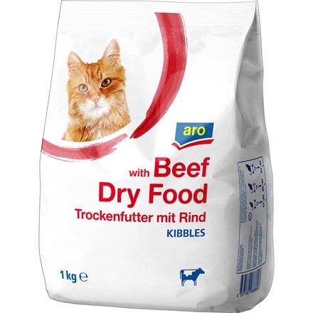 - Obiloviny, maso a výrobky živočišného původu (4%hovězí v červených granulích), vedlejší výrobky rostlinného původu, oleje a tuky, minerální látky.