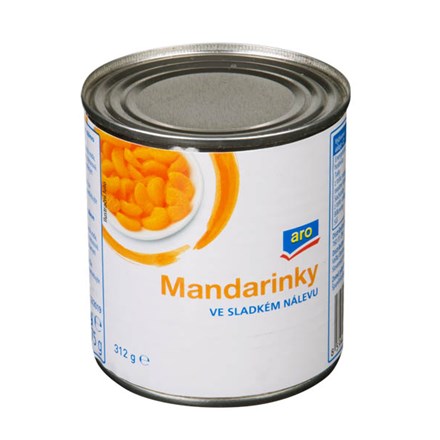 - Mandarinky ve sladkém nálevu. Konzervované pasterované jednodruhové ovoce s nálevem.