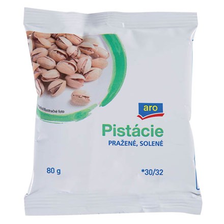- Pistáciové ořechy ve skořápce, pražené, solené. Suché skořápkové plody. Baleno v ochranné atmosféře.