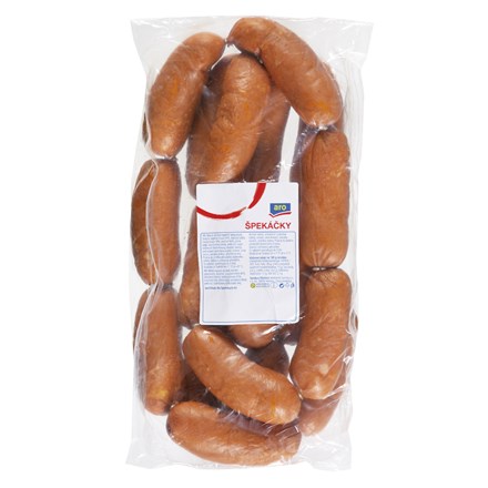 - vepřové maso 40%, vepřové sádlo, hovězí maso 10%, vepřové kůže, pitná voda, bramborový škrob, jedlá sůl, stabilizátory E451, E250, antioxidant E301, česnek, směs koření, extrakty koření, přírodní aroma, vepřové střívko