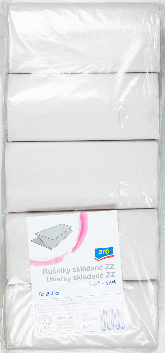 aro ZZ Ručníky papírové 1vrstvé šedé 5 x 250 ks