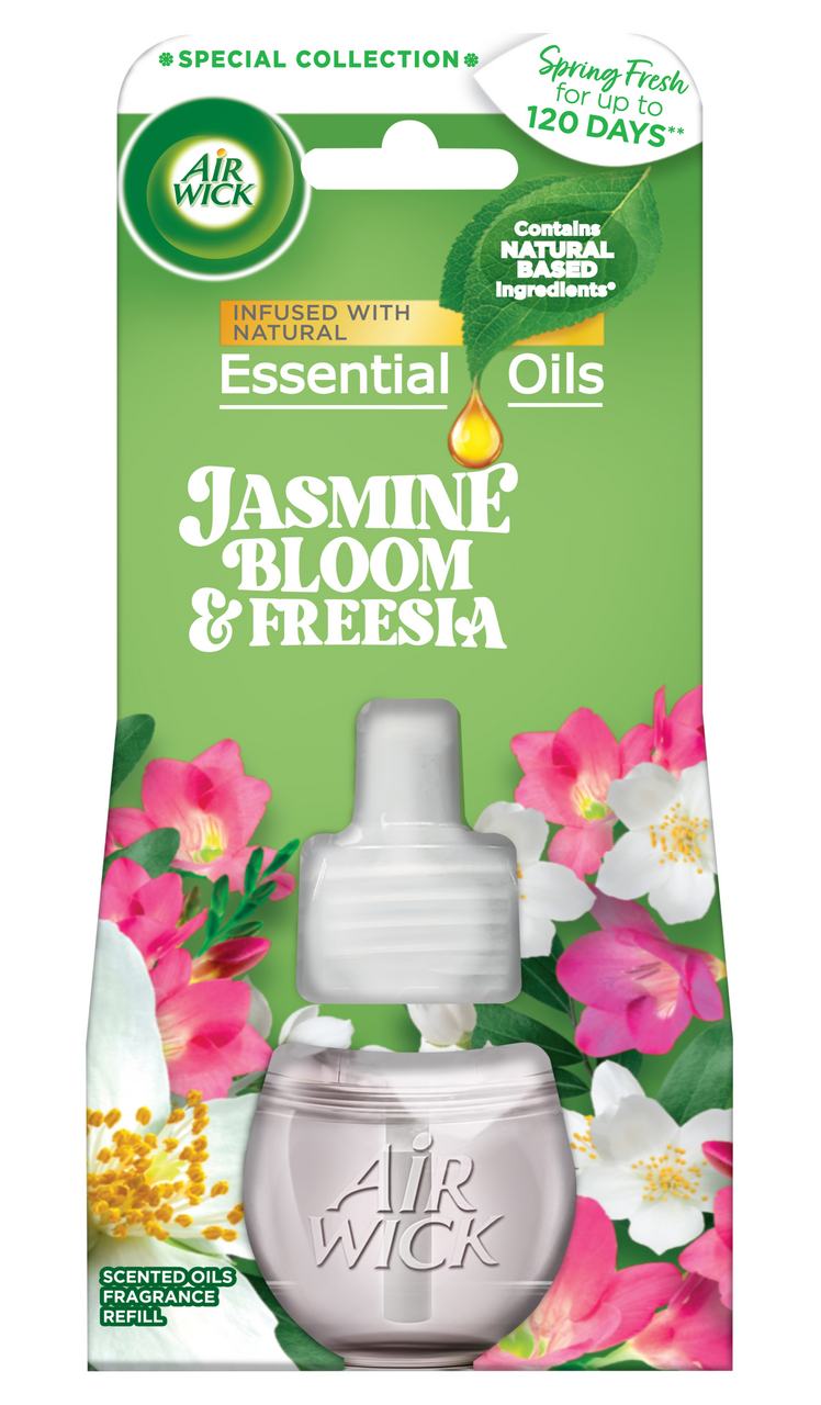 - Air Wick tekutá náplň do elektrického osvěžovače vzduchu - Jasmínové květy a frézie. Přeneste se do klidné zahrady a nechte se zahalit vůní čerstvých rozkvetlých květů jasmínu a frézie. Složení s vonnými oleji obsahuje složky na přírodní bázi a je obohaceno o přírodní esenciální oleje, které byly vytvořeny tak, aby vám přinesly autentický zážitek z vůně.