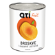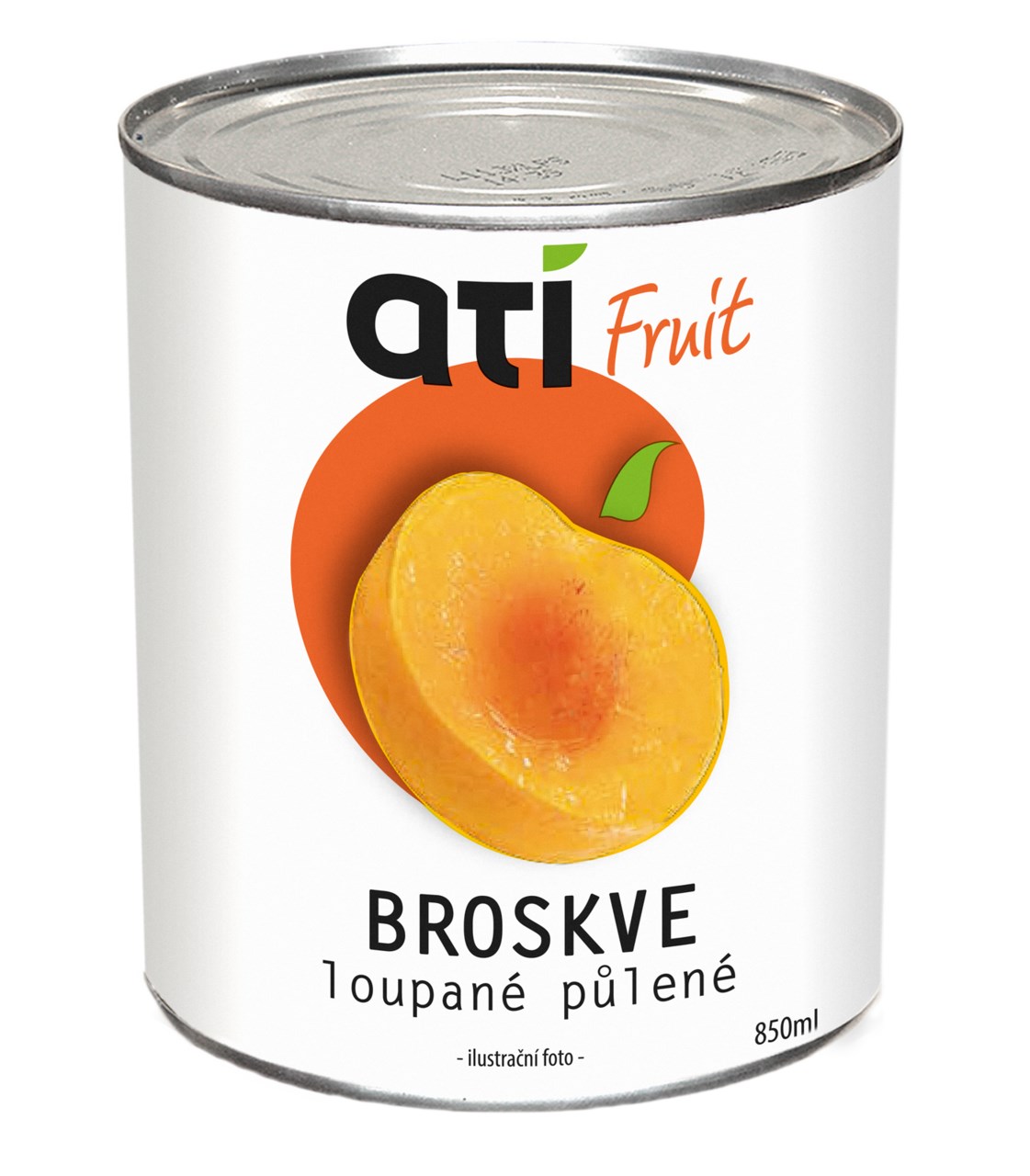 - Broskve loupané půlené v mírně sladkém nálevu. Kompot. Sterilizované.