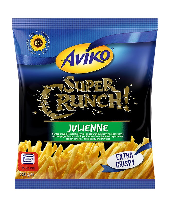 - Super křupavé bramborové hranolky, potahované, předsmažené, hluboce zmrazené.