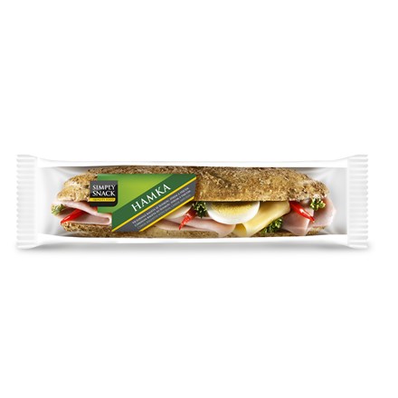 - 43% pečivo - PŠENIČNÁ MOUKA mouka, droždí, sůl, vepřové sádlo, cukr, přípravek zlepšující mouku (PŠENIČNÁ MOUKA, emulgátor E 471, SLADOVÁ MOUKA, zahušťovadlo xanthan, látka zlepšující mouku kyselina askorbová, regulátor kyselosti E 341, enzym), voda, celozrnná směs (PŠENIČNÁ MOUKA, slunečnicové semínko, lněné semínko,JEČNÝ SLAD, pšeničný kvas, SLADOVÁ MOUKA, cukr, pšeničný škrob, PŠENIČNÁ BÍLKOVINA, emulgátor E 471, regulátor kyselosti octan sodný, látka zlepšující mouku kyselina askorbová, enzym), PRAŽENÝ JE4MEN; 17% pomazánka - smetanový JOGURT, zakysaná SMETANA, sušené odstředěné MLÉKO, zahušťovadla (jedlá vepřová želatina, agar a E 466), sušená syrovátka, stabilizátor modifikovaný kukuřičný škrob, jedlá sůl; 17% šunka - vepřová kýta, voda, jedlá sůl, konzervant dusitan sodný, stabilizátory karagenan, E 450, E 451 a E 452, dextróza, zahušťovadlo xanthan, antioxidant erythorban sodný, aroma; 14% SÝR Eidam - PASTERIZOVANÉ MLÉKO, mlékárenské kultury, barvivo annato, sůl, konzervant dusičnan draselný, stabilizátor chlorid vápenatý; 4% paprika - paprika, voda, ocet, sůl, konzervanty benzoan sodný a sorban draselný; 4% VEJCE - VEJCE vařená loupaná, nálev (voda, kyselina citrónová, sůl); nať petrželová