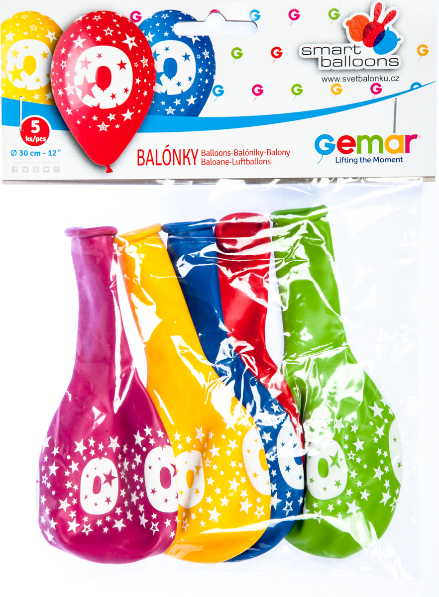 GEMAR Balónek nafukovací 30 cm "0" mix barev 5 ks