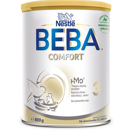- BEBA COMFORT 3 HM-O, instantní mléčná výživa pro malé dětis bakteriemi mléčného kvašení L. reuteri, obohacená vitamíny a minerálními látkami. Od ukončeného 12. měsíce, 800 g plech.