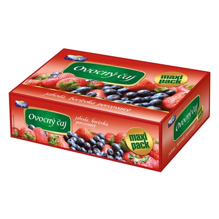 - Ovocný čaj aromatizovaný-příchuť jahoda, borůvka, porcovaný v nálevových sáčcích.