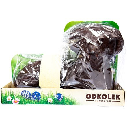 - pšeničná mouka, cukr, sušený vaječný žloutek, sušený vaječný bílek, kypřící látka: E450; rýžová mouka, emulgátory: E475, E471; dextróza, kypřící látka: E500; sůl s jódem (jedlá sůl, jodičnan draselný), emulgátor: řepkový lecitin; zahušťovadlo: xanthan; barvivo: karoteny], voda, kakaová poleva (12,5 %) (cukr, částečně a plně ztužený palmový tuk, kakaový prášek, kakaová hmota, sušená syrovátka, emulgátory: sójový lecitin a E476; aroma), rozinky, rostlinný tuk (palmový tuk, řepkový olej, částečně ztužený palmový tuk a řepkový olej, voda, emulgátor: E475, E471, slunečnicový lecitin; sůl, konzervant: kyselina sorbová; máslové aroma, regulátor kyselosti: kyselina citronová; barvivo: karoteny), máslo (6 %), alginátové ovoce (cukr, glukózo-fruktózový sirup, voda, želírující látka: alginan sodný; regulátory kyselosti: E341, E339, kyselina mléčná; emulgátor: E471; barviva: kurkumin, karmíny; aroma), tuková poleva (cukr, palmojádrový tuk, palmový tuk, sušená syrovátka, sušené mléko, emulgátor: lecitiny, aroma, barvivo: karmíny), konzervant: propionan vápenatý. Může obsahovat stopy skořápkových plodů.