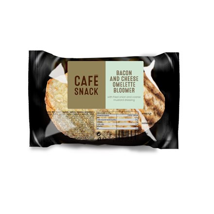 - Pšeničný chléb Bloomer 34%, vaječná omeleta 20%, dresink z hrubozrnné hořčice 16%, sýr maasdamer 9%, sýr mozzarella 9%, bešamel 7%, slanina 5%, smažená cibulka 1%