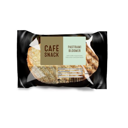 - Pšeničný chléb Bloomer 37%, pastrami 22%, lanýžová majonéza 17%, sýr mozzarella 10%, bešamel 7%, sýr parmezán 5%, smažená cibulka 1%