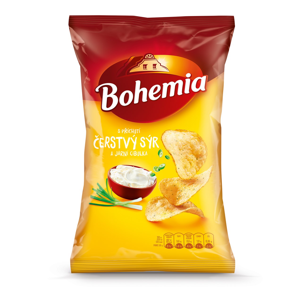 - Bohemia Chips s příchutí čerstvý sýr a jarní cibulka 130g