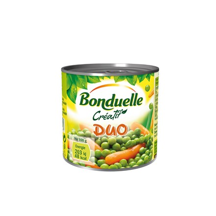 - Hrášek nekalibrovaný (min. 50 %), baby karotka (min. 30 %), pitná voda, cukr, jedlá sůl