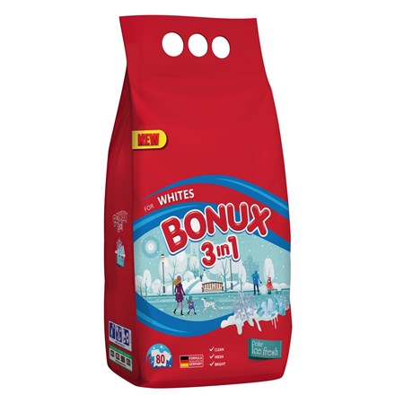 - BONUX PRÁŠEK WHITE POLAR ICE FRESH 80 PD/6KG je silný prací prášek, který poskytuje vynikající bělení a svěžest pro bílé prádlo. Jeho účinné složení odstraňuje i tvrdé skvrny a udržuje prádlo čisté a svěží po dlouhou dobu. Ideální volba pro udržení perfektní čistoty a svěžesti vašeho oblečení.