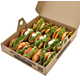 - Máslový croissant, dresing francouzský, kuřecí strips, okurka sterilovaná, lolo salát, kápie sterilovaná, sýr camembert, šlehané máslo, sýr eidam, uzený sýr, podkladový salát, šunka,