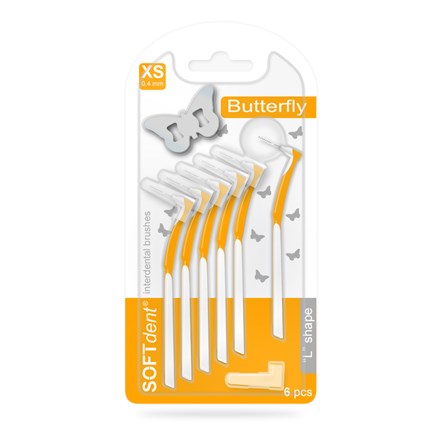 - Mezizubní kartáčky SOFTdent® Butterfly budou vaším spojencem v prevenci zubního kazu a parodontózy. Speciálně zahnutý tvar umožňuje dokonalé čistění i v zadních mezizubních prostorách a efektivní odstranění plaku. Jemné štětinky a speciálně potažený drát chrání citlivé dásně a zubní krčky před podrážděním. Držadlo otočené o 90° a prodloužená rukojeť zajišťují komfortní uchopení a snadné ovládání. Speciálně ukotvený drát zabraňuje jeho vytržení, což zajišťuje dlouhou životnost kartáčku.