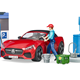 - Skvěle vybavená čerpací stanice Bworld. K čištění vozidel je zde připravena plně funkční myčka. Vodu lze naplnit do integrované nádrže. Tlak se zvyšuje pomocí vestavěné ruční vzduchové pumpy a čištění vodou lze spustit/vypnout vypínačem. BRUDER Roadster s odnímatelnou střechou a systémem výměny kol včetně figurky zákazníka doplňují tuto úžasnou sadu. Hračka není vhodná pro děti mladší 3 let. Vhodné pro hru uvnitř i venku. Měřítko: 1:16. Rozměr balení: 19,5 x 26 x 56,5 cm. Věk: 4+