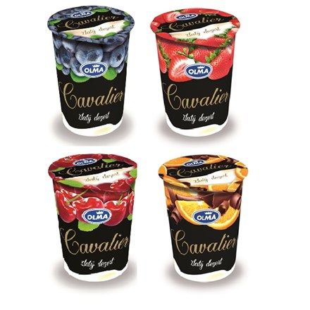 - Čokoláda-pomeranč: smetana, ochucující složka 28 % (cukr, pomerančová šťáva 29 %, čokoláda v prášku 15,6 % (cukr, kakao 32 %), voda, zahušťovadla modifikovaný škrob a karubin, aroma), modifikovaný škrob, mléčné kultury.Bez lepku.Borůvka: smetana, ochucující složka 28 % (borůvky 45 %, cukr, voda, zahušťovadla modifikovaný škrob a pektin, aroma), modifikovaný škrob, mléčné kultury.Bez lepku.Slaný karamel: smetana, ochucující složka 28 % (voda, cukr, karamelový sirup 12,5 % (invertní cukr, sušené mléko, karamelizovaný cukr, máslo, kokosový tuk, emulgátor řepkový lecitin), zahušťovadla: modifikovaná škrob a karubin, karamelizovaný cukr 0,5 %, sůl 0,1 %, regulátor kyselosti kyselina mléčná, aroma), modifikovaná škrob, mléčné kultury.Bez lepku.Javorový sirup-vlašský ořech: smetana 71%, ochucující složka 28 % (voda, cukr, javorový sirup 4 %, vlašské ořechy 2,5 %, zahušťovadla: modifikovaný škrob a pektin, karamelizovaný cukr, citrónová šťáva, sůl, aromata), modifikovaný škrob, mléčné kultury.Bez lepku.