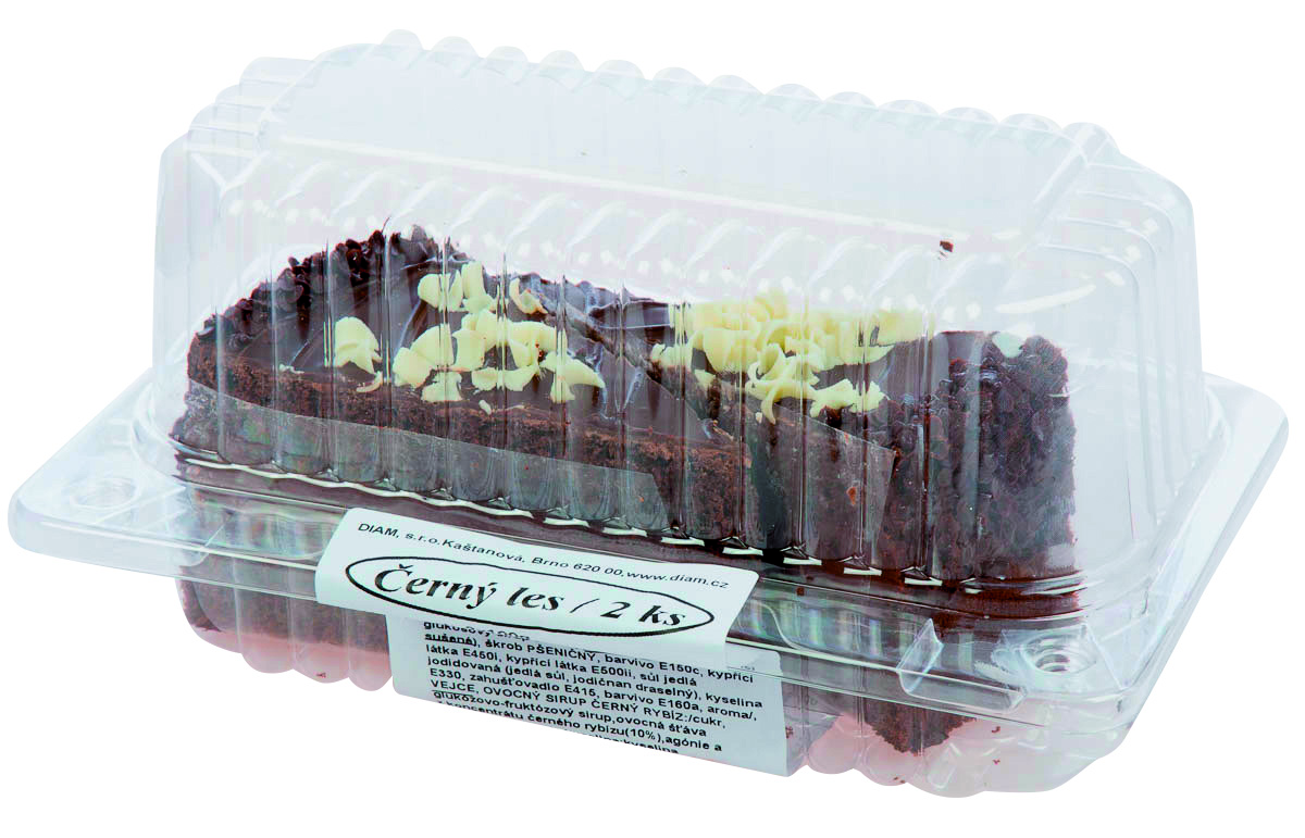 - ŠLEHAČKA 31%:36%/smetana [MLÉKO], stabilizátor E407/, ČOKOLÁDA 58%:38ˇ%/kakaová hmota, cukr, kakaové máslo, emulgátor E322 [SÓJA], aroma/, PIŠKOT TMAVÝ:/cukr, mouka PŠENIČNÁ, kakaový prášek se sníženým obsahem tuku, emulgátor (emulgátory E472b, E477, glukosový sirup sušený,MLÉKO odtučněné sušené), škrob PŠENIČNÝ, barvivo E150c, kypřící látka E450i, kypřící látka E500ii, sůl jedlá jodidovaná (jedlá sůl, jodičnan draselný), kyselina E330, zahušťovadlo E415, barvivo E160a, aroma/, VEJCE, OVOCNÝ SIRUP ČERNÝ RYBÍZ:/cukr, glukózovo-fruktózový sirup,ovocná šťáva z koncentrátu černého rybízu(10%),agónie a černého bezu,voda,kyselina:kyselina citrónová,aroma/, DŽEM ČERNÝ RYBÍZ:/cukr, ovocný protlak (jablko), glukózový sirup, ovocný protlak (černý rybíz) (7%), ovocný protlak (červený rybíz), modifikovaný škrob E1442, kyselina E330, želírující látka E440(i), aroma, voda/, VODA,DEKORAČNÍ POSYP:/cukr,hydrogenované rostlinné tuky,kakaový prášek10-12%,emulgátor, SOJOVÝ LECITIN, aroma/