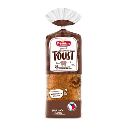 - pšeničná mouka, voda, směs se semeny 10 % (lněná semena, ovesné vločky, žitná celozrnná mouka, ječná krupice, slunečnicová semena, pražené ječné slady, pšeničné vločky), pšeničný kvas 8 % (voda, pšeničná mouka, pšeničná kvasná kultura), pšeničná celozrnná mouka, droždí, jedlá sůl s jódem (jedlá sůl, jodičnan draselný), řepkový olej, přípravek [pšeničná mouka, pšeničná a ječná sladová mouka, sladový extrakt (ječný slad, voda), látka zlepšující mouku kyselina L-askorbová], cukr, regulátor kyselosti octany sodné.