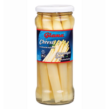 - Chřest celý bílý loupaný ve slaném nálevu. Konzervovaná sterilovaná zelenina.
