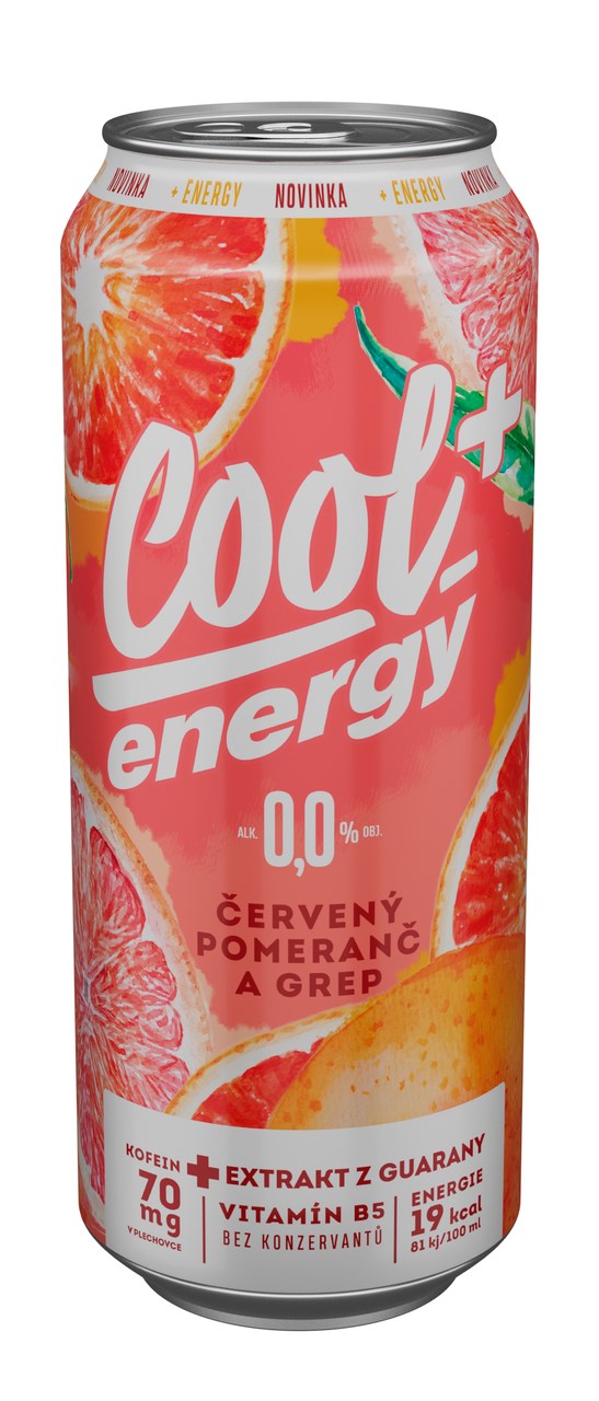 - Cool+ Energy 0,0 Červený Pomeranč, míchaný nápoj z piva s cukrem a sladidlem z rostliny stévie 0,5l plech