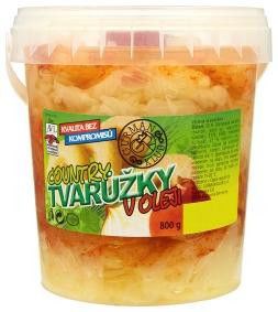 - 50% olomoucké tvarůžky (TVAROH, jedlá sůl, regulátory kyselosti (uhličitan vápenatý, uhličitan sodný), sýrařské kultury), 35 % řepkový olej, marinovaná cibule (cibule, pitná voda, antioxidant (DISIŘIČITAN draselný), koření, feferony.