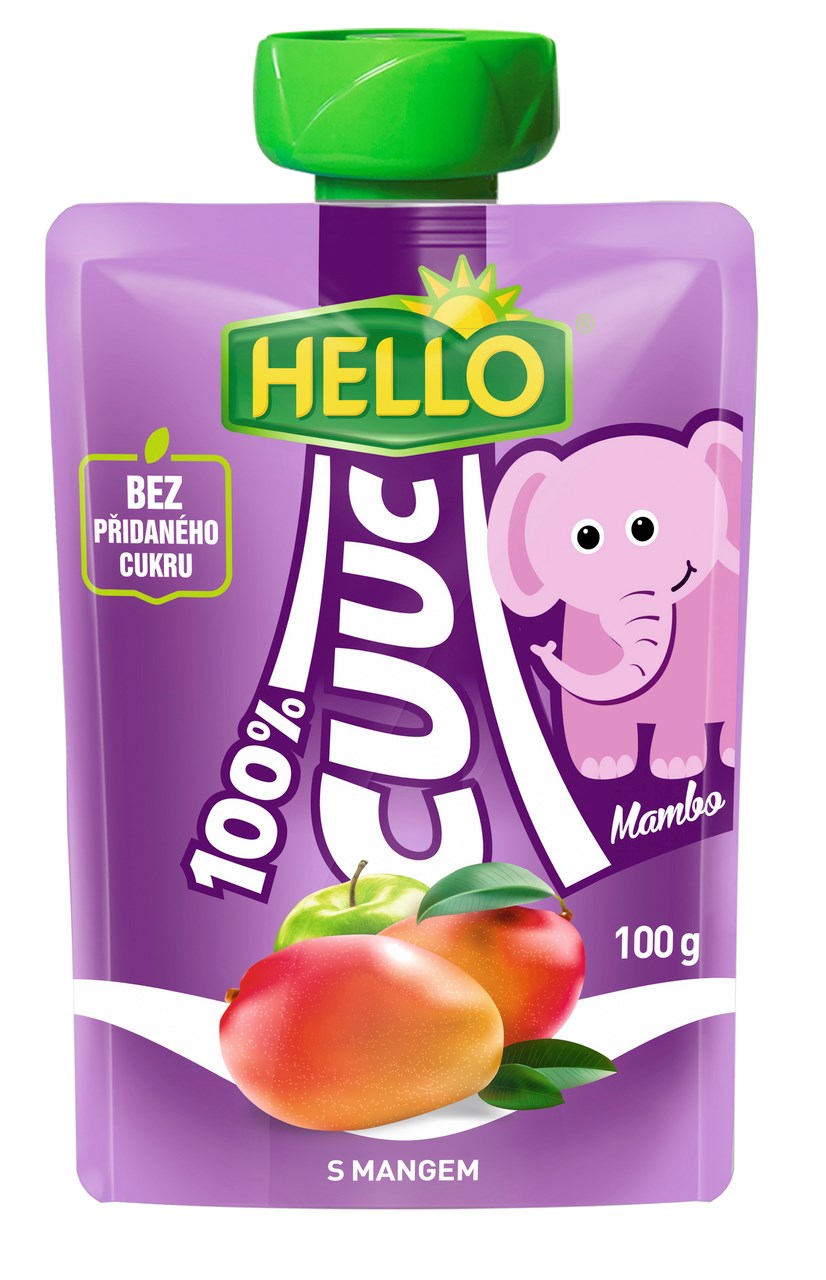 - ovoce (jablečné pyré 80%, mangové pyré 20%), citronový koncentrát, antioxidant: kyselina askorbová. 100g výrobku obsahuje 15g přírodních sladidel. Na 100g výrobků bylo použito 112g ovoce.