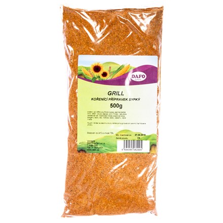 - jedlá sůl s jódem 45%, kukuřičná krupice, paprika sušená mletá sladká, látka zvýrazňující chuť a vůni: glutaman sodný, kmín drcený, cibule sušená mletá, česnek sušený mletý, kmín římský mletý, saturejka mletá, petrželová nať, nové koření mleté