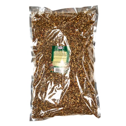 - pepř černý drcený, sůl hrubozrnná max. 20%, paprikové floky červené, mrkev sušená granulovaná, cibule sušená granulovaná, pastinák sušený kostka, petržel sušená kostka, petrželová nať mletá