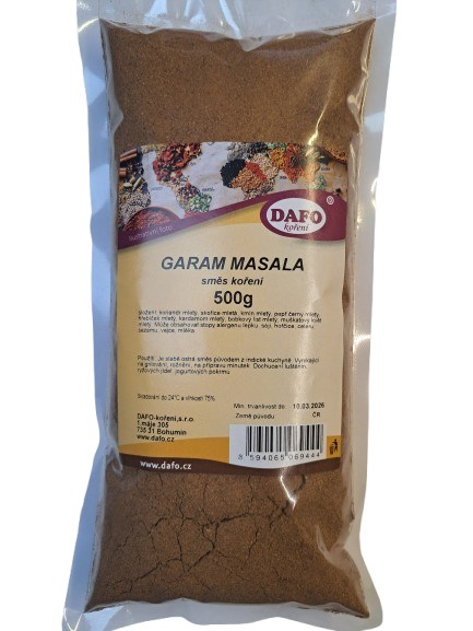- koriandr mletý, skořice mletá, kmín mletý, pepř černý mletý, hřebíček mletý, kardamom mletý, bobkový list mletý, muškátový květ mletý