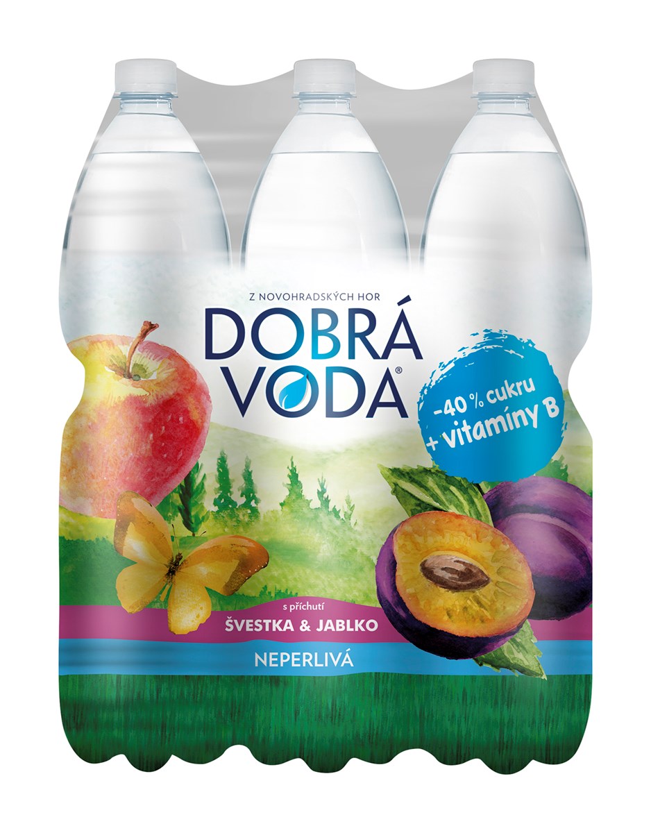 - přírodní minerální voda, cukr, kyselina: kyselina citronová, přírodní aroma švestka, přírodní aroma jablko, konzervant: benzoan sodný, vitamíny: niacin, B6, B12