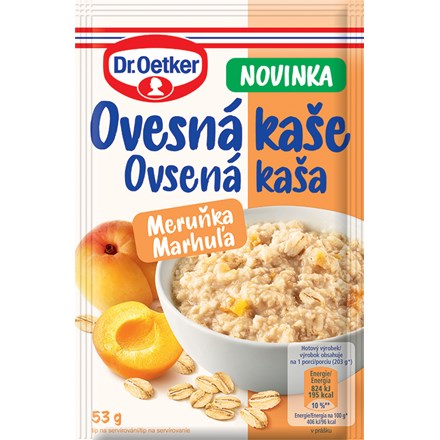 - Začněte svůj den chutnou ovesnou kaší Meruňka, která je díky vysokému obsahu celozrnných ovesných vloček zdrojem energie a vitality na celý den. Ovesná kaše Meruňka je zdrojem vlákniny a beta-glukanů, které přispívají k udržení normální hladiny cholesterolu v krvi.