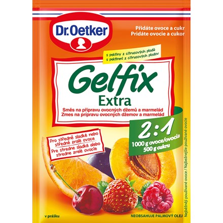 - 1. Očištěné a vypeckované ovoce nakrájíme na velmi malé kousky nebo rozemeleme.2. Odvážíme 1000 g ovoce a dáme do většího hrnce. Obsah balíčku Gelfix Klasik smícháme se dvěma lžícemi cukru a přidáme k ovoci. Za stálého míchání asi 1 minutu důkladně povaříme.Gelfix Klasik přidáváme vždy před cukrem! 3. Přidáme zbytek cukru a přivedeme do varu. Za stálého míchání a probublávání důkladně povaříme minimálně 5 minut a odstavíme. Odebereme případnou pěnu a ihned plníme do připravených sklenic.4. Sklenice uzavřeme pečlivě víčkem a otočíme dnem vzhůru asi na 5 minut.